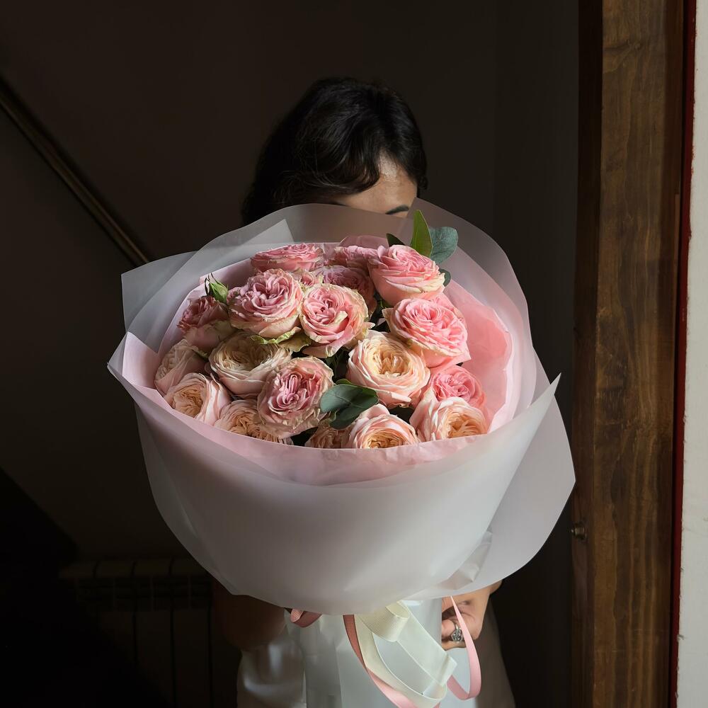 Эвкалипт - 1 шт. кустовые розы - 5 шт.