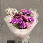 Маттиола - 3 шт. Гвоздика - 5 шт. Хризантема одноголовая - 3 шт. розы - 3 шт.