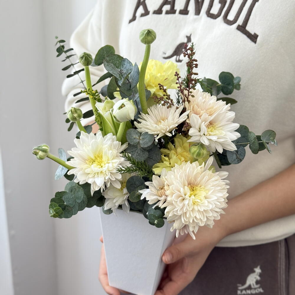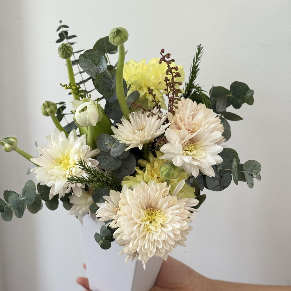 Eucalyptus - 3 шт. Lily - 1 шт. dianthus - 2 шт. mixed chrysanthemums - 1 шт.