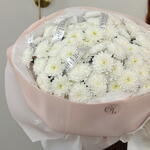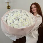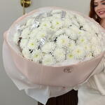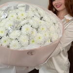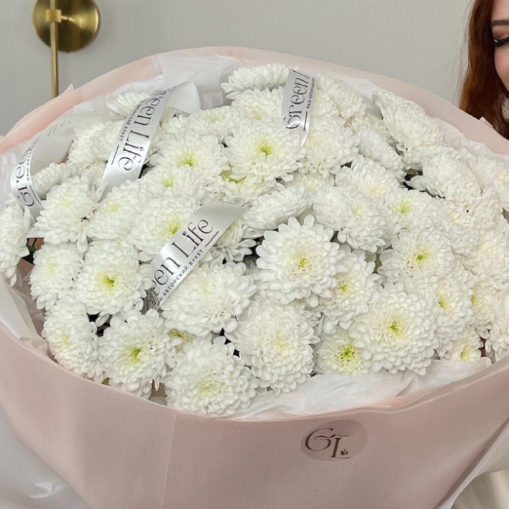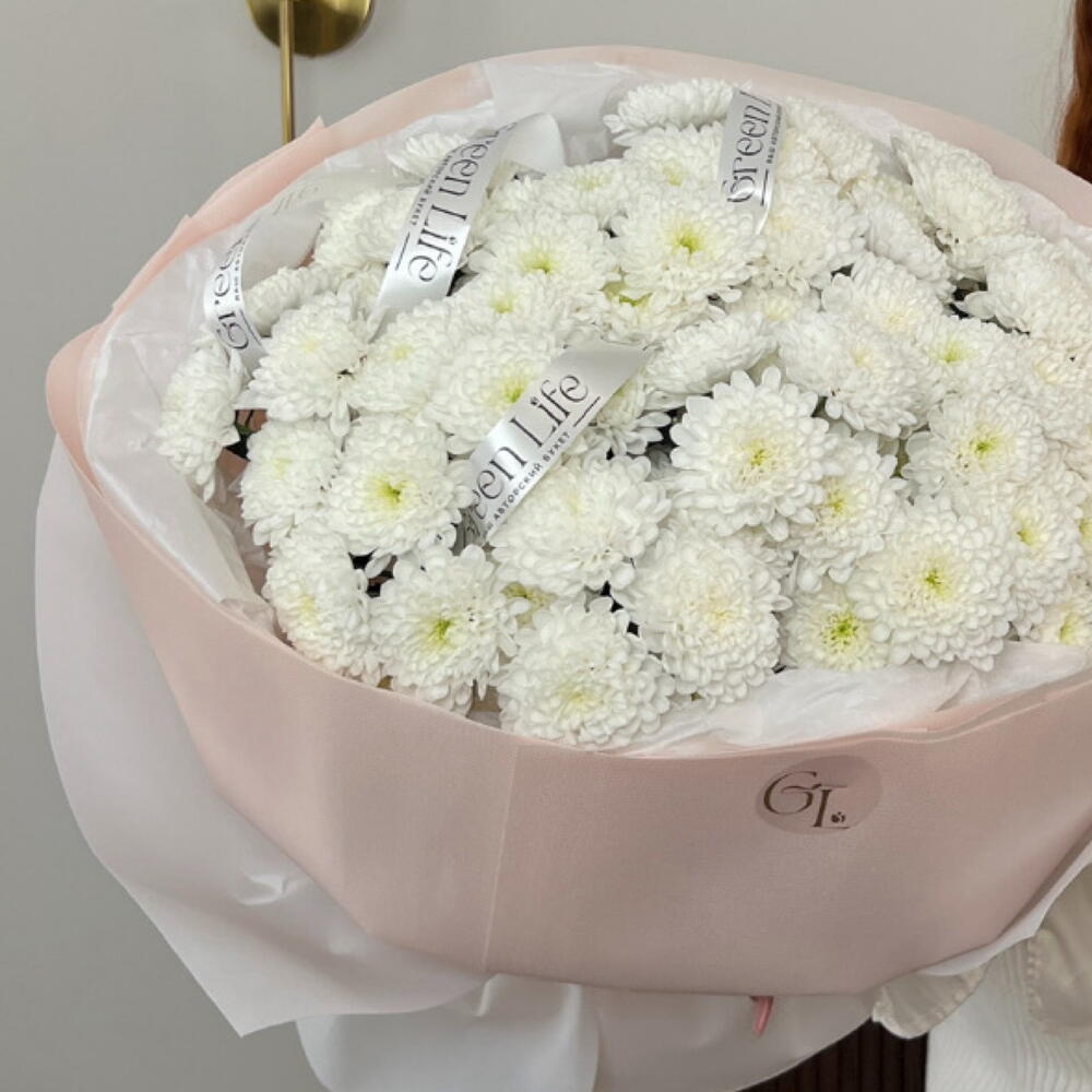 Объёмное облако хризантем, словно сотканное из нежности и тишины. Букет завораживает своей простотой и благородством.