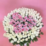 Роскошная цветочная композиция из нежно-розовых и белых роз поражает своим объёмом и изяществом. Пышный круглый букет в коробке будто создан для того, чтобы подчеркнуть самые трогательные моменты — день рождения, годовщину или признание в любви. Мягкие розовые бутоны в центре обрамлены изысканным кремовым фоном, создавая эффект живой картины. Чтобы сохранить свежесть, держите цветы в прохладном месте, избегайте прямых солнечных лучей и сквозняков, регулярно подливайте свежую воду в коробку и при необходимости аккуратно обновляйте срезы стеблей.