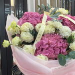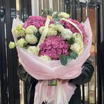 Гортензия - 3 шт. Лизиантус - 9 шт. Оформление - 1 шт. Эвкалипт Микс - 1 шт.
