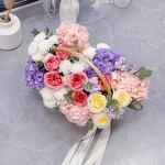 Корзина - 1 шт. Маттиола - 3 шт. Эвкалипт - 1 шт. Роза - 9 шт. Хризантема - 4 шт. гортензии - 5 шт.