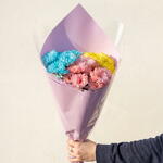 Этот изысканный монобукет состоит из трех ветвей кустовой хризантемы. Каждая цветочная композиция уникальна своим сочетанием разноцветных цветов. Букет идеально подходит как подарок для любого случая или для украшения интерьера. Хризантемы символизируют счастье, здоровье и долгую жизнь - подарите своим близким эти нежные и яркие цветы.