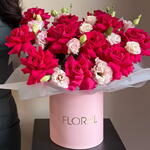Завораживающий букет из лазурных лизиантусов и распустившихся королевских роз. Композиция подобрана таким образом, что цветы кажутся одним цельным произведением искусства. Мягкий аромат этих цветов мгновенно вызывает приятные эмоции и непринужденную улыбку. Подарок, который подходит для любого повода, фантазийно упакованный в стильную коробку.