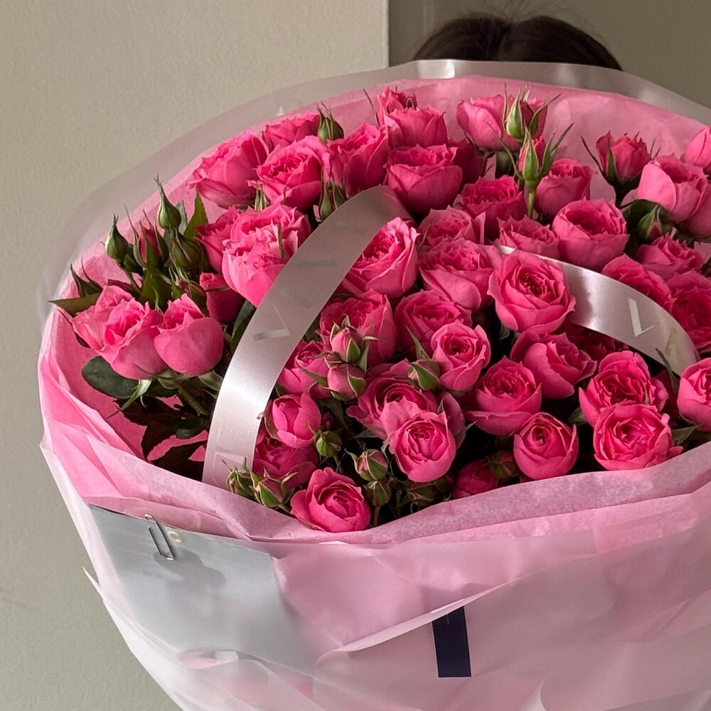 Яркий и выразительный букет из кустовых малиновых роз, наполненный глубиной цвета и характером. Насыщенный малиновый оттенок символизирует страсть, уверенность и искренние чувства, а множество бутонов на каждой ветке придаёт букету пышность и объём. Элегантное оформление подчёркивает сочность цвета, делая композицию эффектным подарком для тех, кого хочется удивить и по-настоящему порадовать.