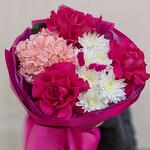 Яркий букет с гортензией и розами "Малиновый джаз" S