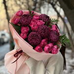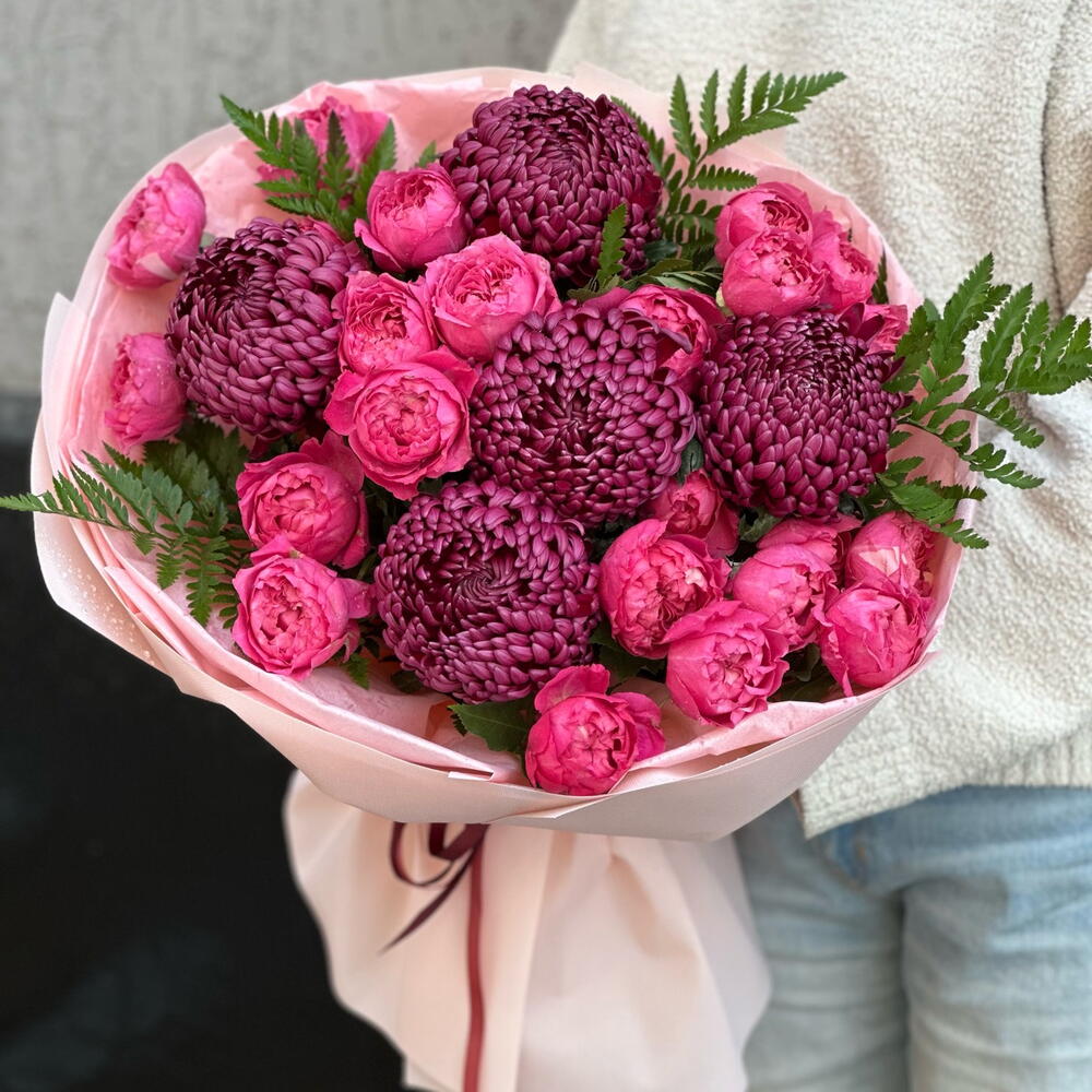 Кустовая роза - 5 шт. хризантемы одноголовые - 5 шт.