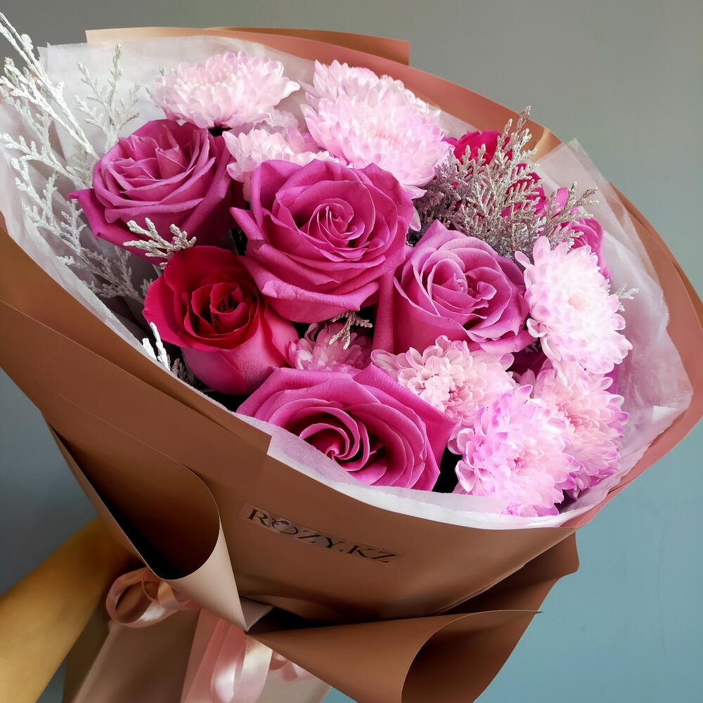 Хризантема кустовая - 2 шт. Роза - 8 шт. Туя - 2 шт.