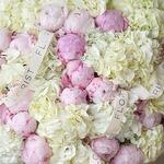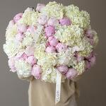 Пион - 25 шт. Гортензия белая - 15 шт. Аквабокс - 1 шт. Авторская упаковка - 3 шт. витамины для цветов - 2 шт. бесплатная открытка на выбор - 1 шт.