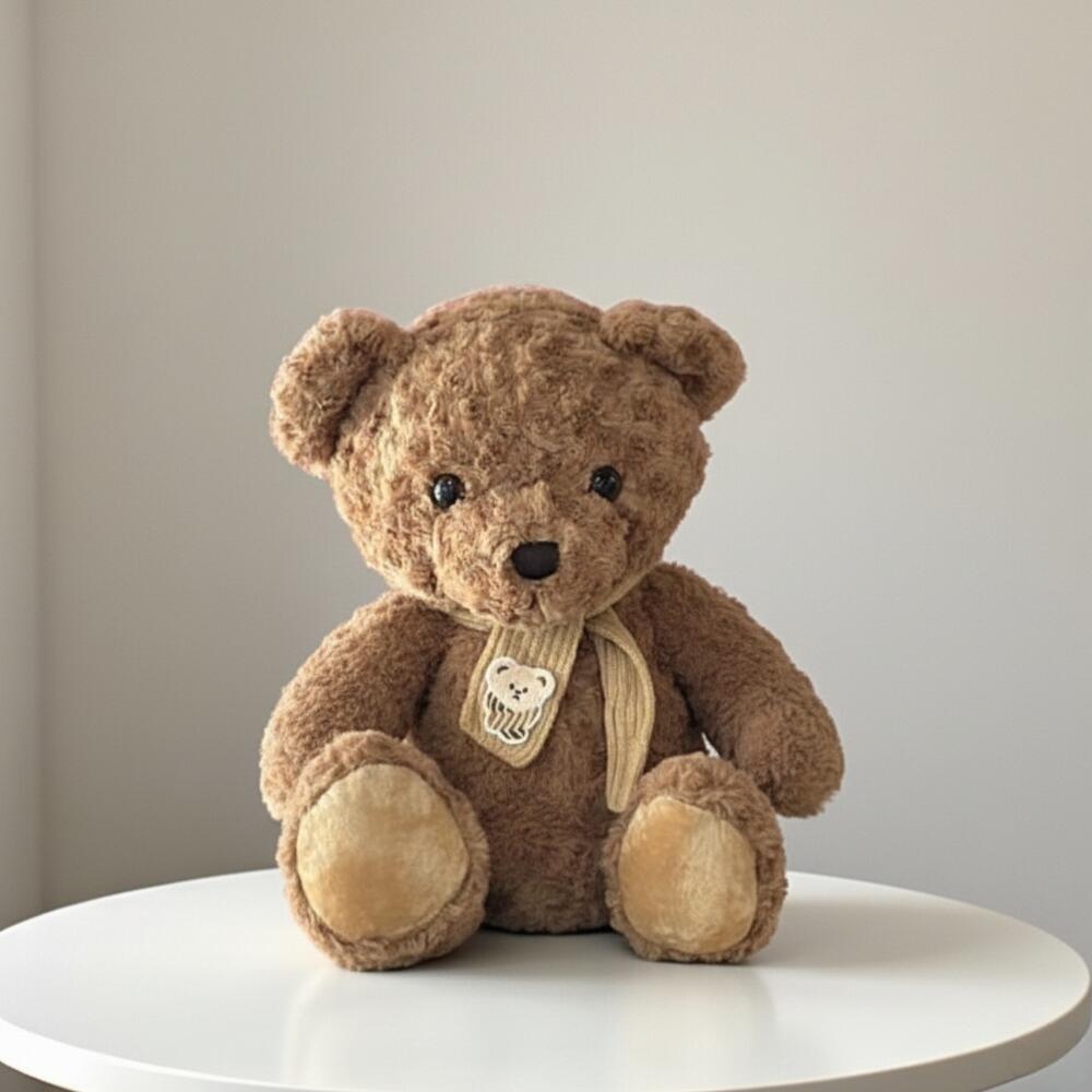 Очаровательный плюшевый медведь нежно-коричневого цвета станет лучшим другом для ребёнка или уютным украшением интерьера. Его мягкая, приятная на ощупь шерстка и добрые глазки создают ощущение тепла и заботы. Шарфик с забавной нашивкой придаёт игрушке особое обаяние и делает её стильным подарком на любой праздник. Медведь подарит чувство уюта и порадует как детей, так и взрослых, наполняя дом атмосферой нежности и радости.