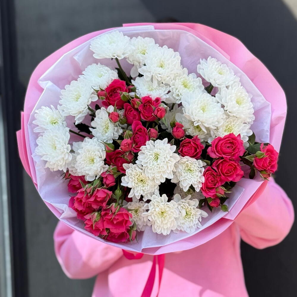 Микс букет из хризантем и кустовых роз