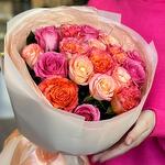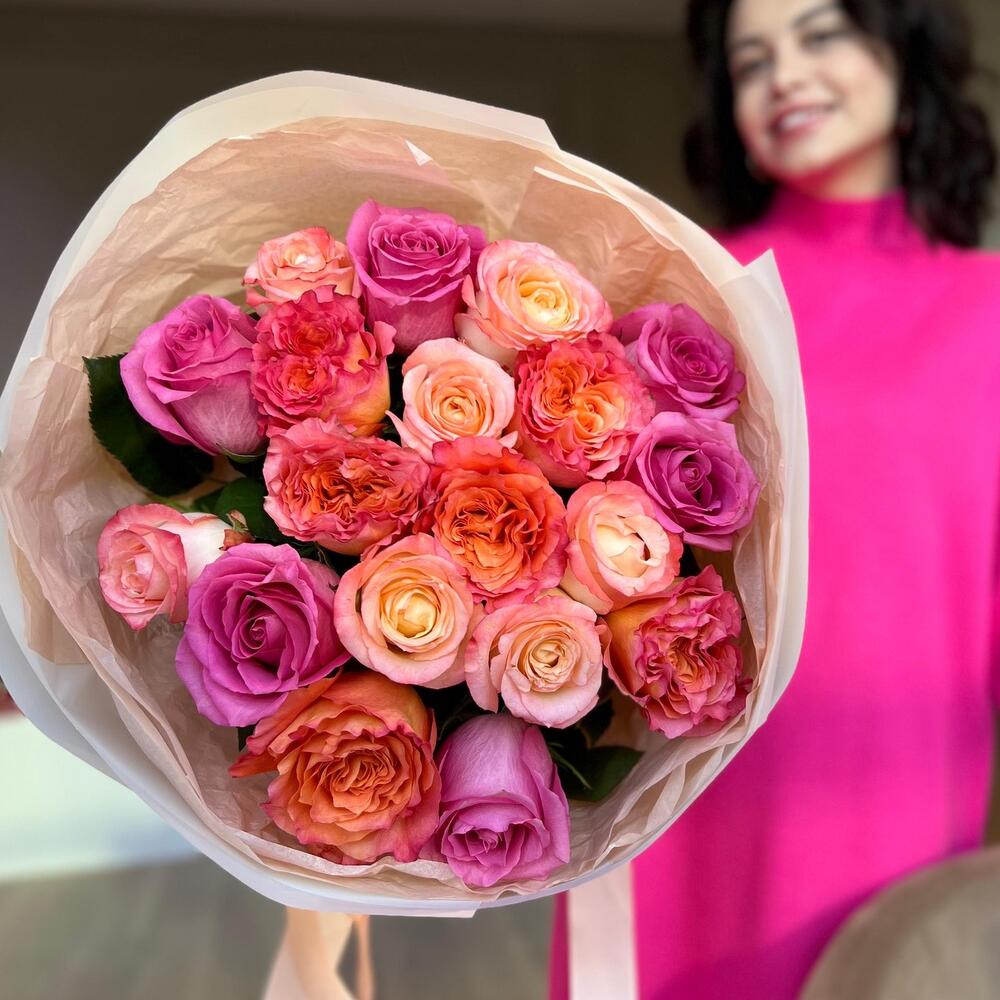 Роза розовая - 6 шт. Упаковка дизайнерская - 4 шт. Роза оранжевая - 6 шт. Роза персиковая - 7 шт.