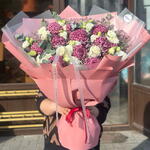 Лизиантус - 9 шт. Лимониум - 11 шт. Эвкалипт - 11 шт. Хризантема одноголовая - 11 шт.