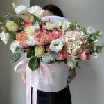 Роза - 5 шт. Эустома - 4 шт. гортензии - 1 шт.