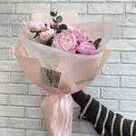 Пион - 9 шт. Эвкалипт - 3 шт. Тишью - 2 шт. Бант - 1 шт. Фоамиран - 3 шт.