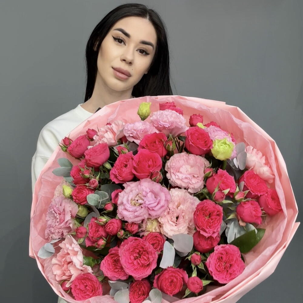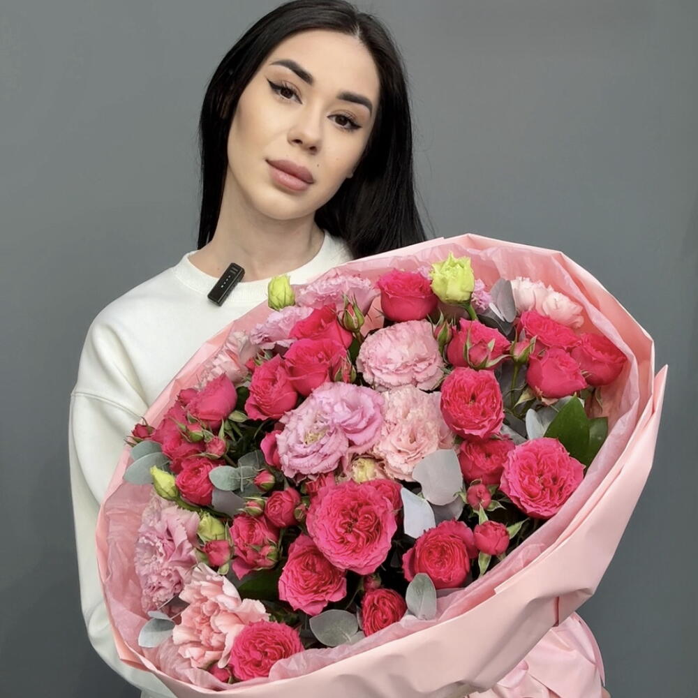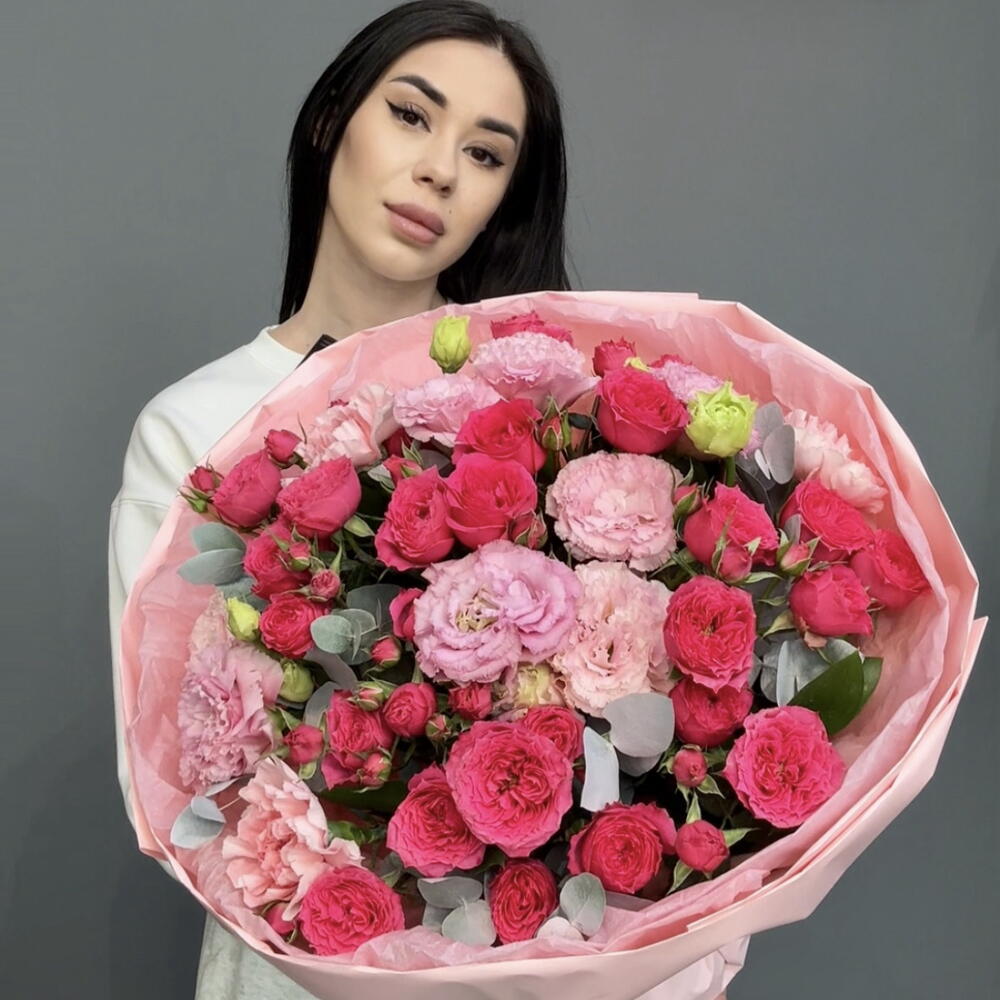 Кустовая роза - 5 шт. Эустома - 3 шт. Диантус - 3 шт.