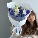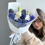 Упаковка дизайнерская - 1 шт. Гиацинт синий - 7 шт. эустома белая - 1 шт.