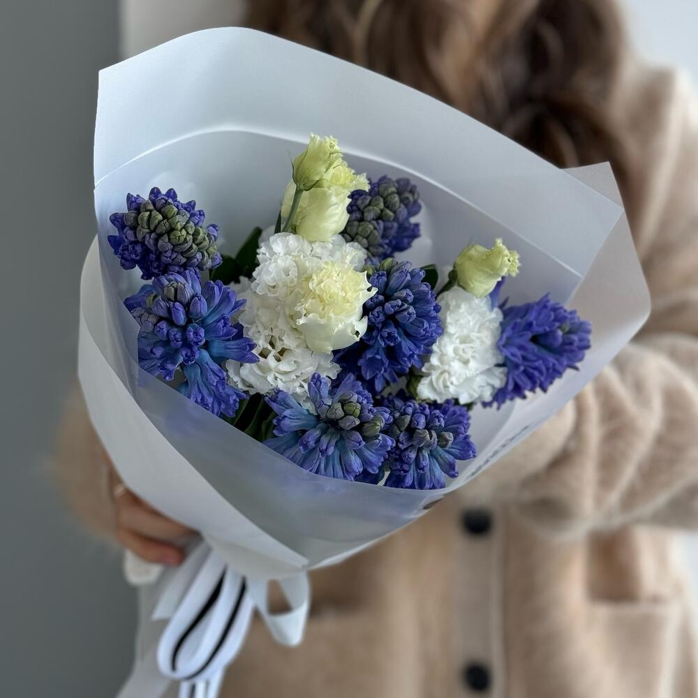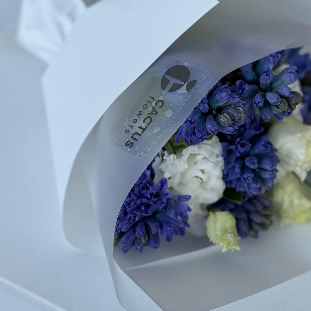 Упаковка дизайнерская - 1 шт. Гиацинт синий - 7 шт. эустома белая - 1 шт.