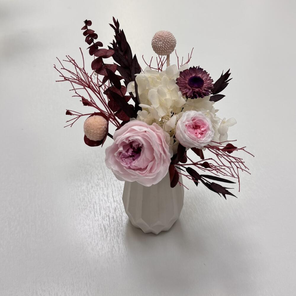 Стабилизированная роза - 1 шт. Хлопок натуральный - 1 шт. стабилизированная гвоздика - 1 шт. стабилизированная гортензия пучок - 1 шт.