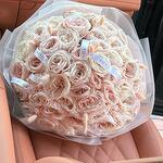 Открытка - 1 шт. пионовидная роза (англия) - 51 шт. лагурус (голландия) - 3 шт. калька в ассортименте - 4 шт.