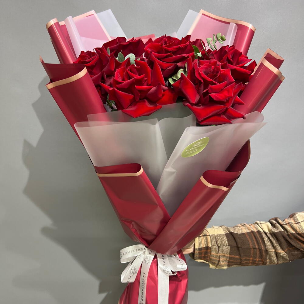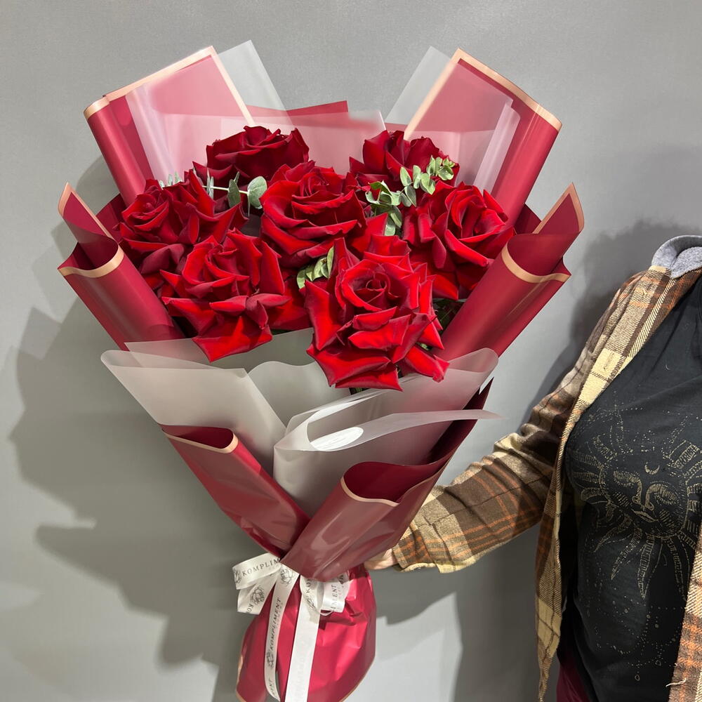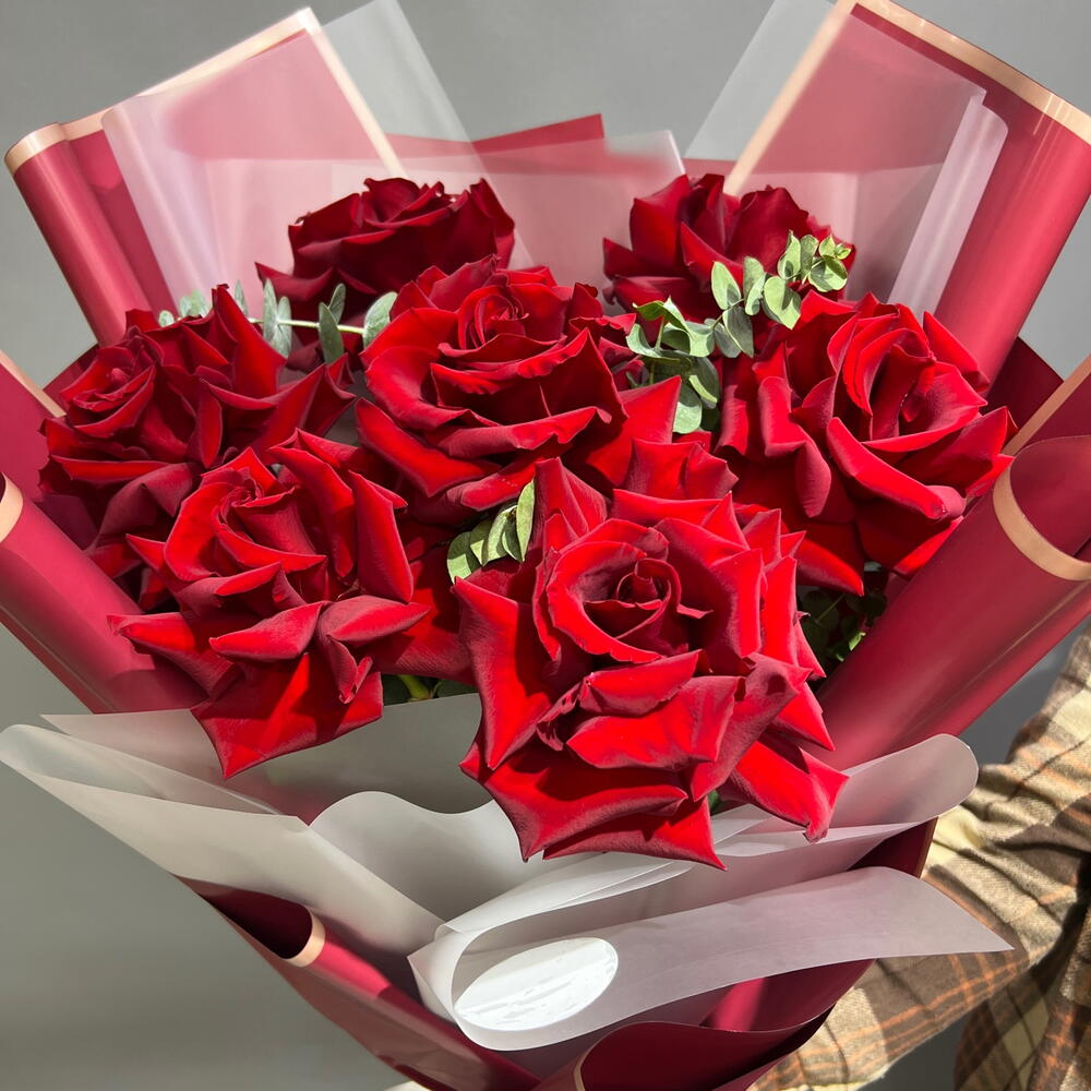 Эвкалипт - 1 шт. роза французская бордовая - 7 шт.