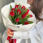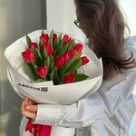 Моно букет из 15 красных тюльпанов в фирменной упаковке