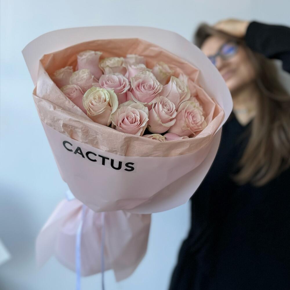Моно букет из 19 розовых роз