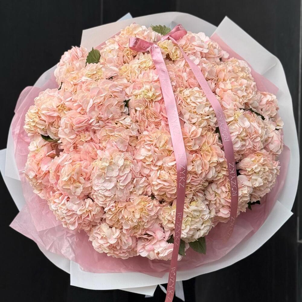Моно букет из 35 розовых гортензий