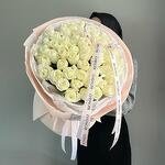 Объемный букет из 51 белой розы в оформлении