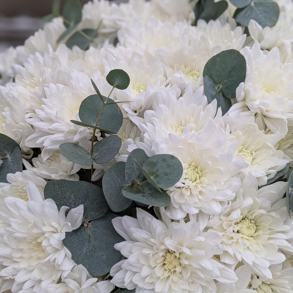 Хризантема кустовая - 15 шт. Эвкалипт - 3 шт.
