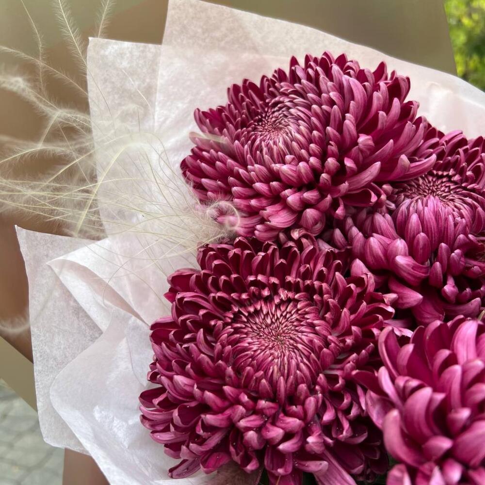 Ковыль - 1 шт. Лагурус (сухоцвет) - 5 шт. хризантема бигуди - 5 шт.