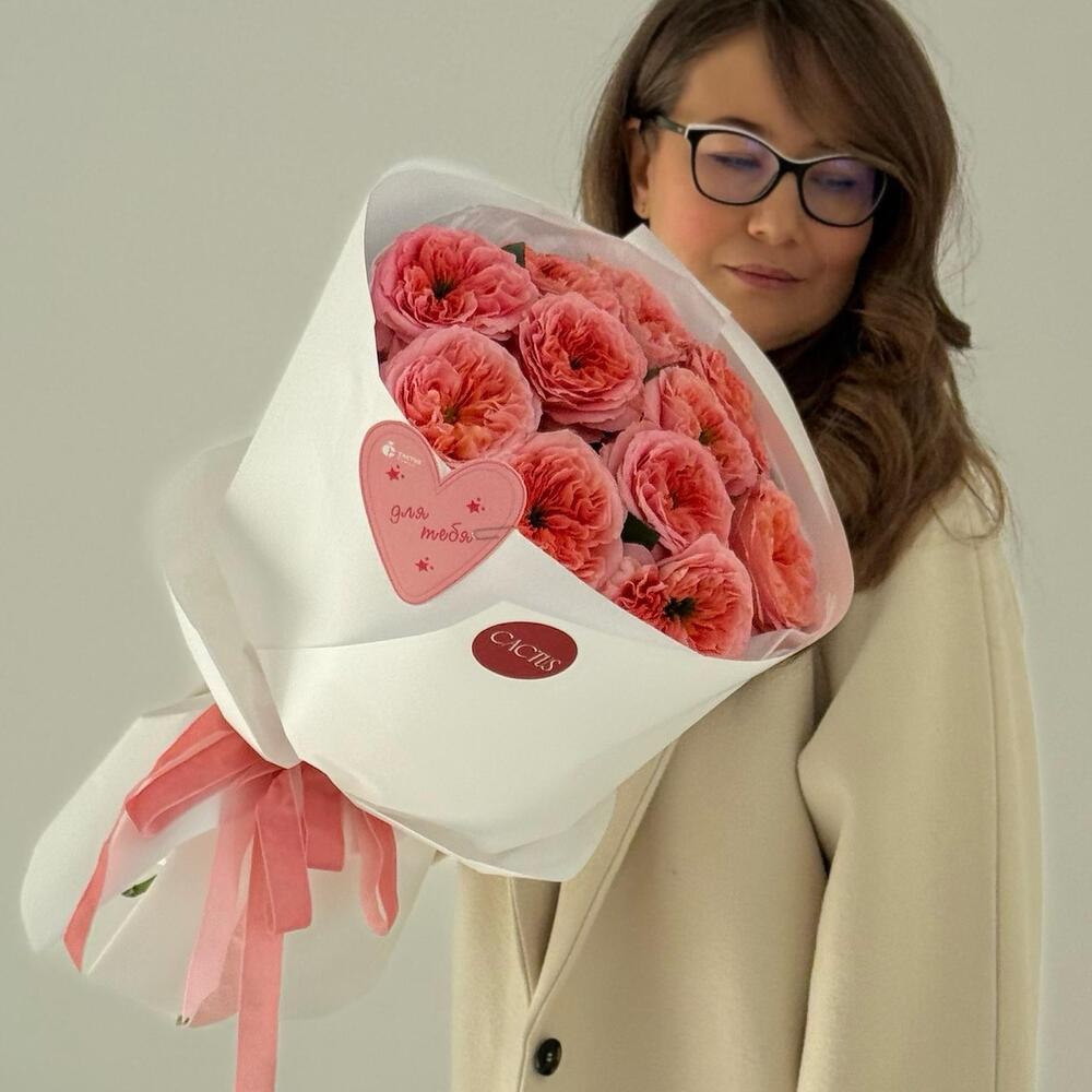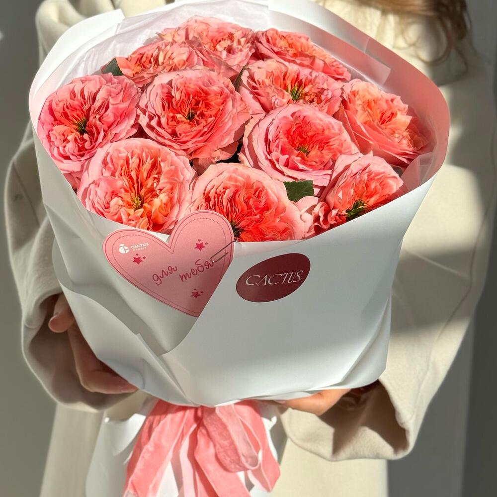 Моно букет из пионовидных роз «Люблю!»