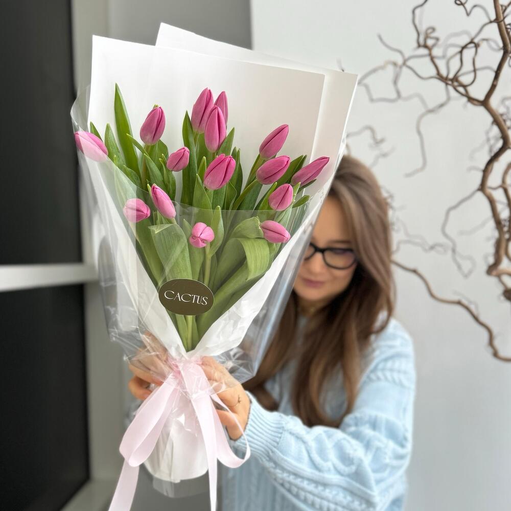 Моно букет из тюльпанов PINK ( 15шт)