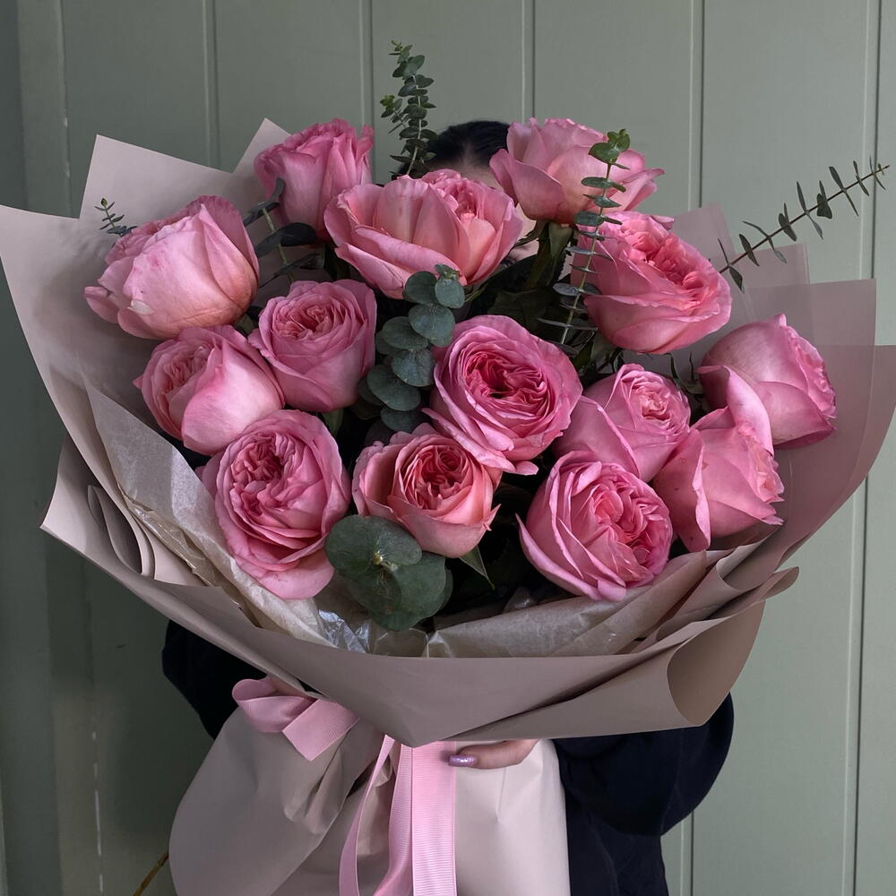 Эвкалипт Микс - 1 шт. роза пинк экспрешн - 15 шт.