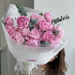 Пион - 15 шт. Эвкалипт - 1 шт. Упаковка дизайнерская - 1 шт.