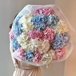 Гортензия - 21 шт. Открытка - 1 шт. Аквабокс - 1 шт. витамины для цветов (кризал) - 2 шт.