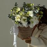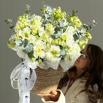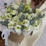 Эустома - 10 шт. Корзина плетеная - 1 шт. Оазис флористический - 2 шт.