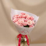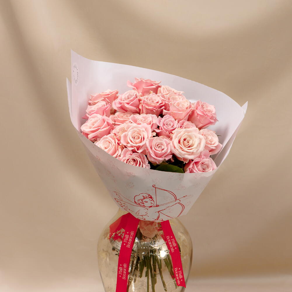 Букет изящными пудровыми розами – воплощение нежности и вечной любви. Их приглушенный оттенок делает букет утонченным и стильным. Упакован в тематическую бумагу и коробку Malli Botanicals с возможностью добавить открытку. На фото букет в размере S, 25шт.