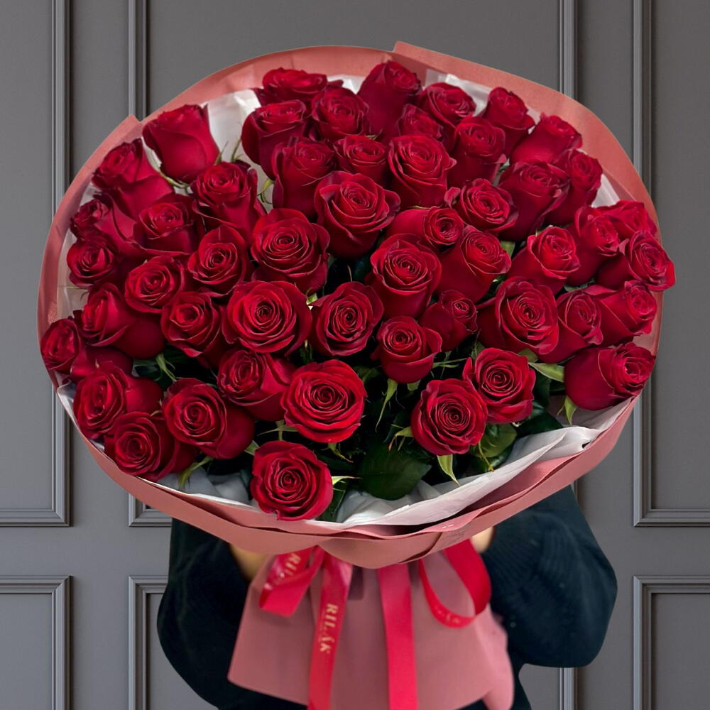 Букет из 51 красной розы — это страсть, сила чувств и роскошь в чистом виде. Каждая роза — словно пылающее сердце, полное любви, восхищения и желания быть рядом. Такая композиция говорит громко: «Ты — единственная». Насыщенный алый цвет, бархатистые лепестки и впечатляющий объём делают этот букет идеальным подарком для особого случая: признания в любви, годовщины или важного момента, который хочется запомнить навсегда. 51 роза — потому что одной точно недостаточно, чтобы выразить всё, что вы чувствуете.