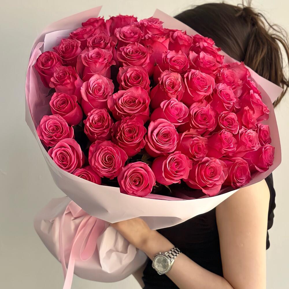 Яркий букет из 51 премиальной, голландской розы в брендированном оформлении