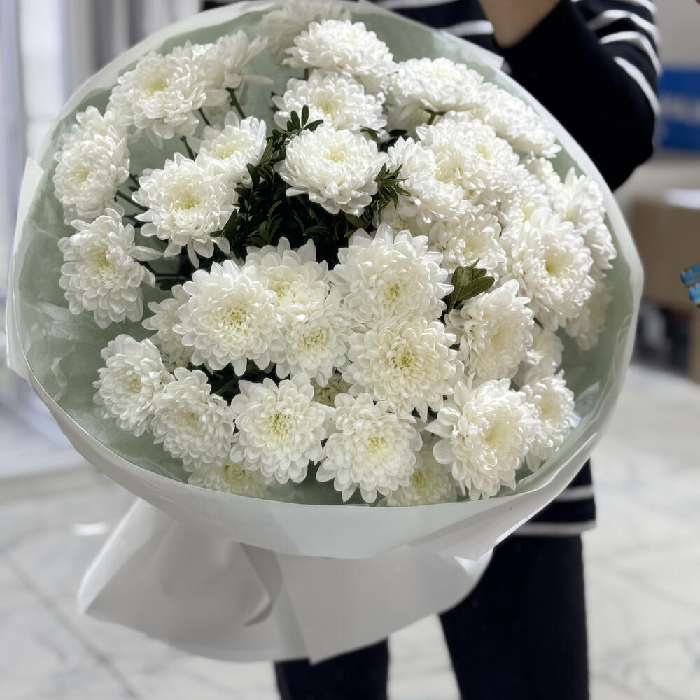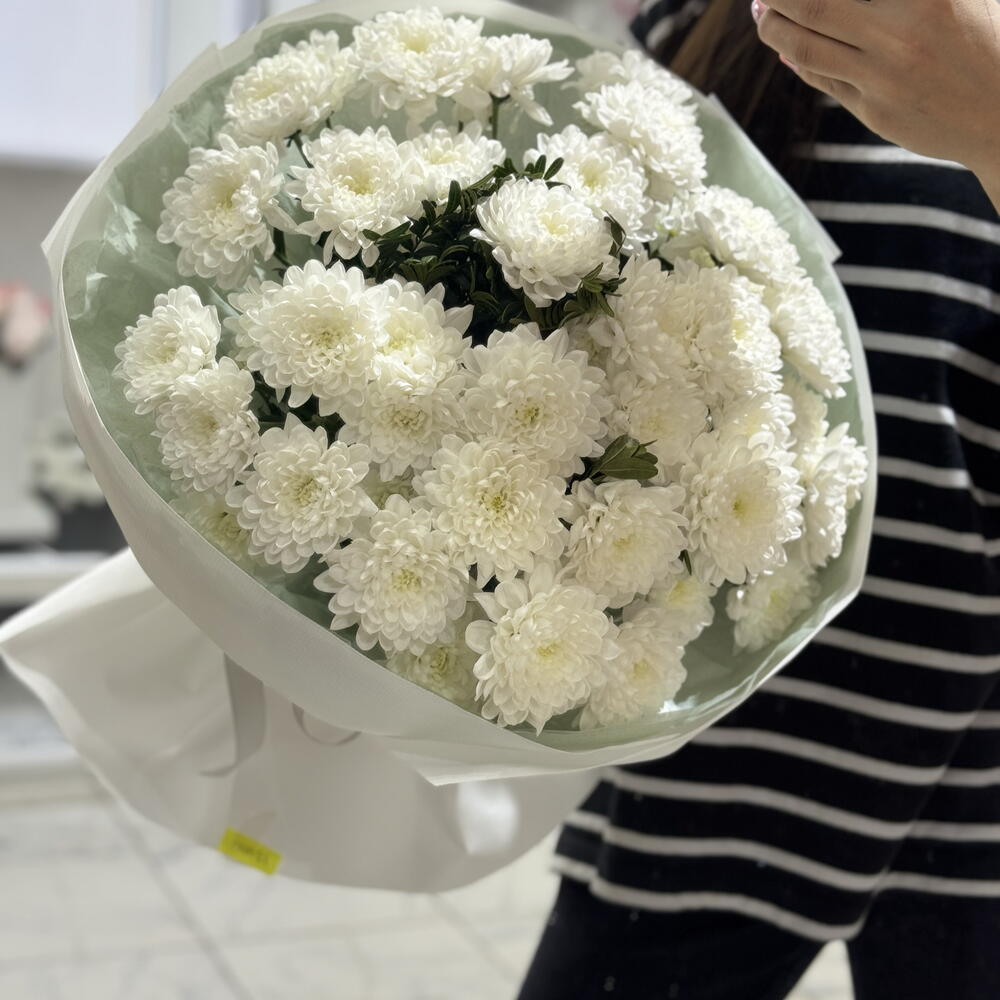 Моно-букет из хризантем Элегантный и универсальный букет, который говорит о заботе без лишних слов. Хризантемы известны своей стойкостью — они долго сохраняют свежесть и радуют аккуратным, ухоженным видом до двух недель и дольше. Моно-букет выглядит стильно и современно, подходит для любого повода: знак внимания, благодарность, комплимент или просто приятный сюрприз без повода. Лаконичное оформление подчёркивает естественную красоту цветов и делает букет уместным как для женщин, так и для мужчин. ✨ Долго стоят ✨ Подходят для любого случая ✨ Стильный и аккуратный вид