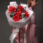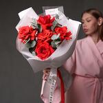 Монобукет из алых эквадорских роз и эвкалипта