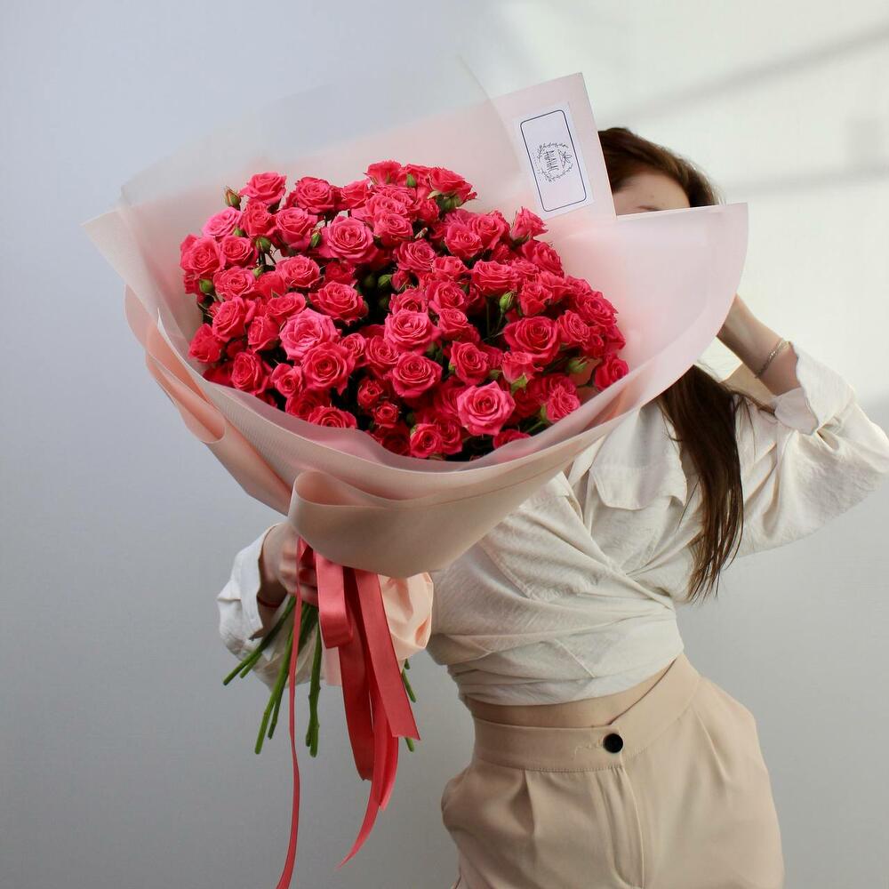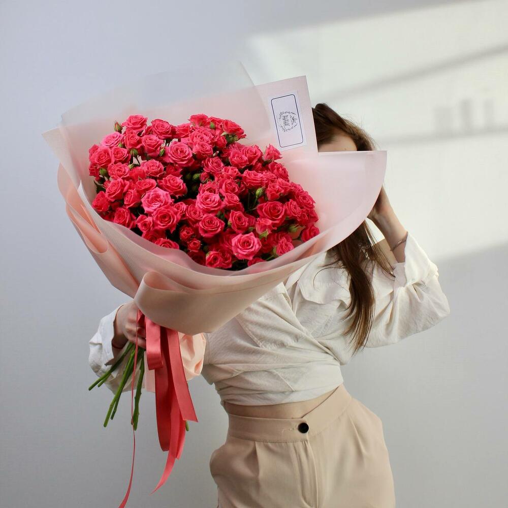 Монобукет из малиновых кустовых роз