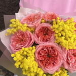 Мимоза - 3 шт. Аквабокс - 1 шт. коробка транспортировочная - 1 шт. роза pink expression - 7 шт.