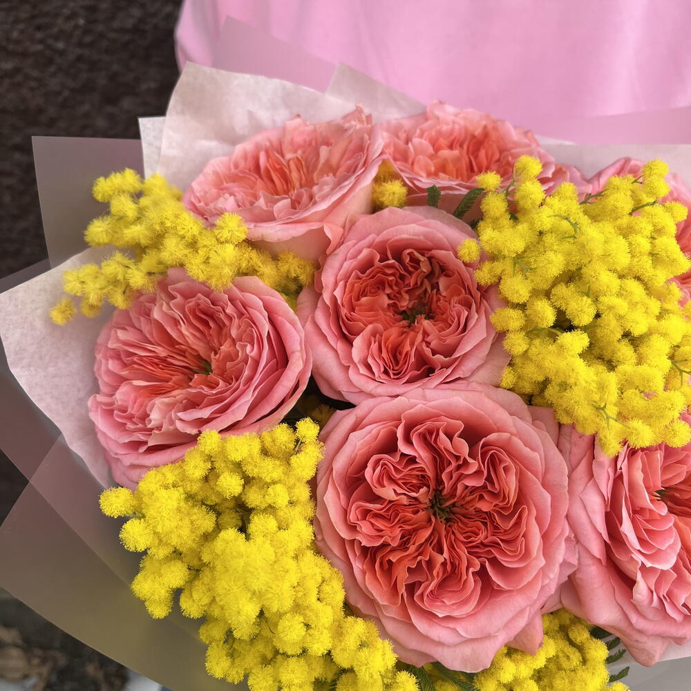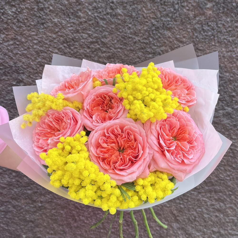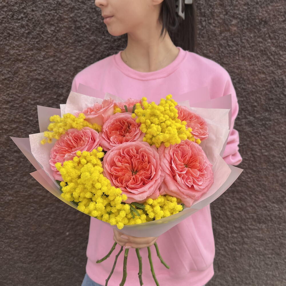 Монобукет из Роз и Мимозы