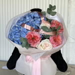 Гортензия - 1 шт. Украшения - 1 шт. Эвкалипт Микс - 1 шт. розы голландские - 2 шт. розы пионовидные - 3 шт.