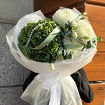 Лизиантус - 2 шт. Украшения - 1 шт. Гортензия зеленая - 1 шт. Эвкалипт Микс - 1 шт. бигуди хризантема - 3 шт.