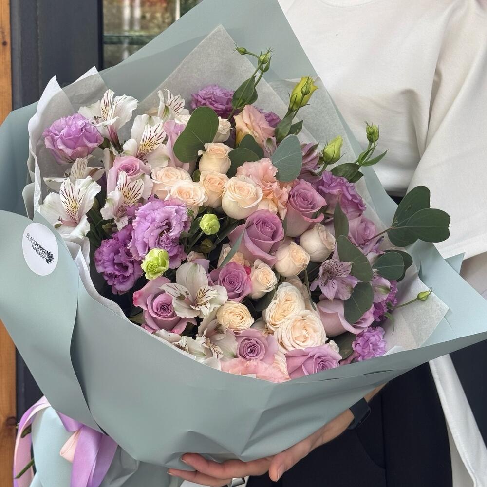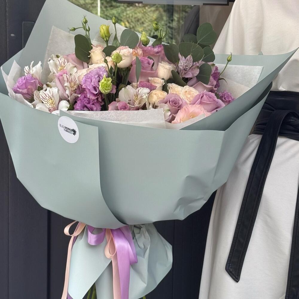 Альстромерия - 5 шт. Роза - 11 шт. Кустовая роза - 5 шт. Эустома - 8 шт.