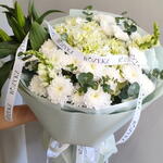 Гортензия - 2 шт. Лилия - 1 шт. Хризантема кустовая - 5 шт. Эвкалипт - 1 шт. Леувенбек - 2 шт.